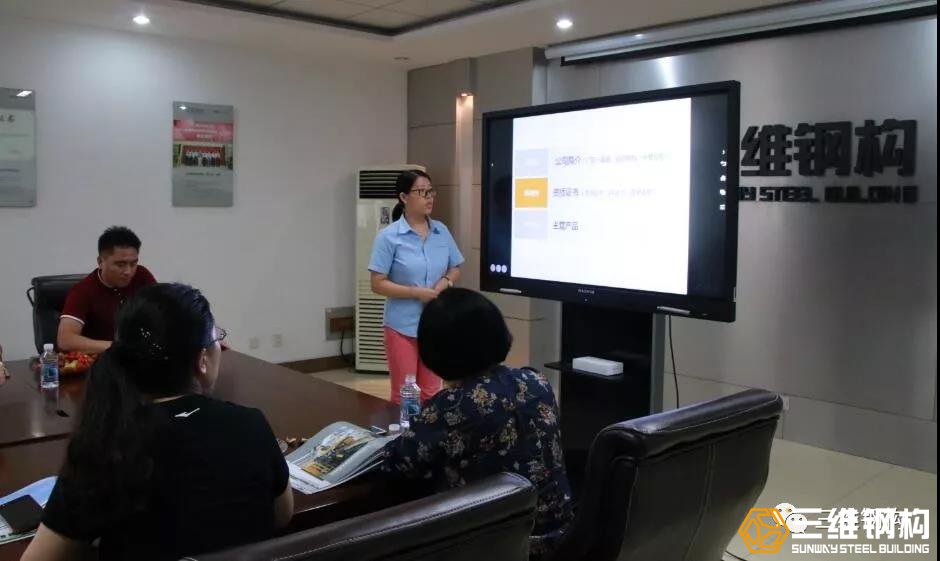 红桃国际钢构外贸部李经理就红桃国际钢构产品与资质等方面进行了比较详细的介绍,让来访贵宾对红桃国际钢构有了更深入的了解。